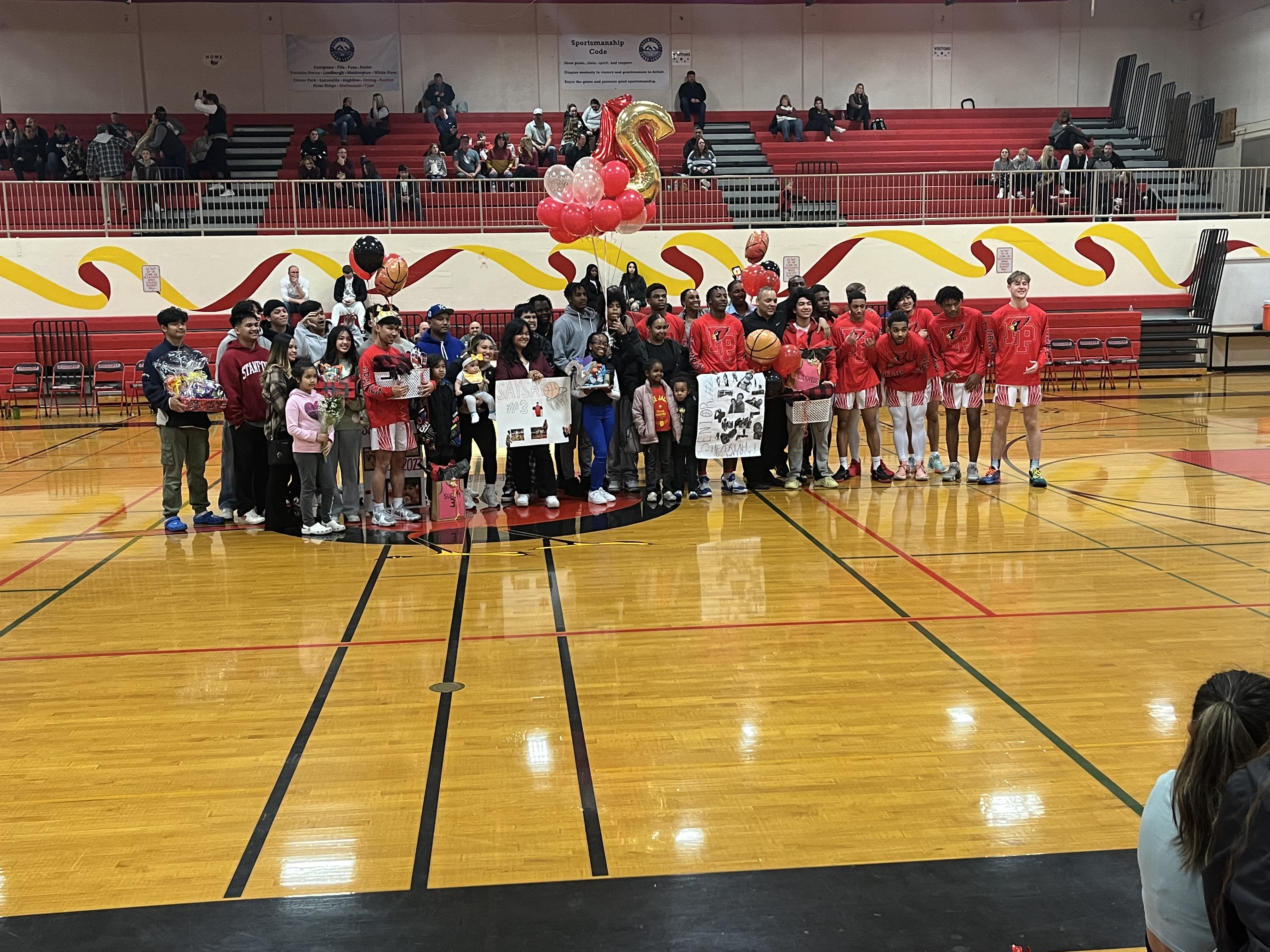 Your Franklin Pierce Boys’ Varsity Basketball team played an emotional yet electrifying senior night game. This exceptional game honored our varsity seniors Sayvaughn Soeum and Hezekiah Weekly for their athletic rigor throughout the season. The back-to-back aggressive four quarters threw both student sections in shambles.